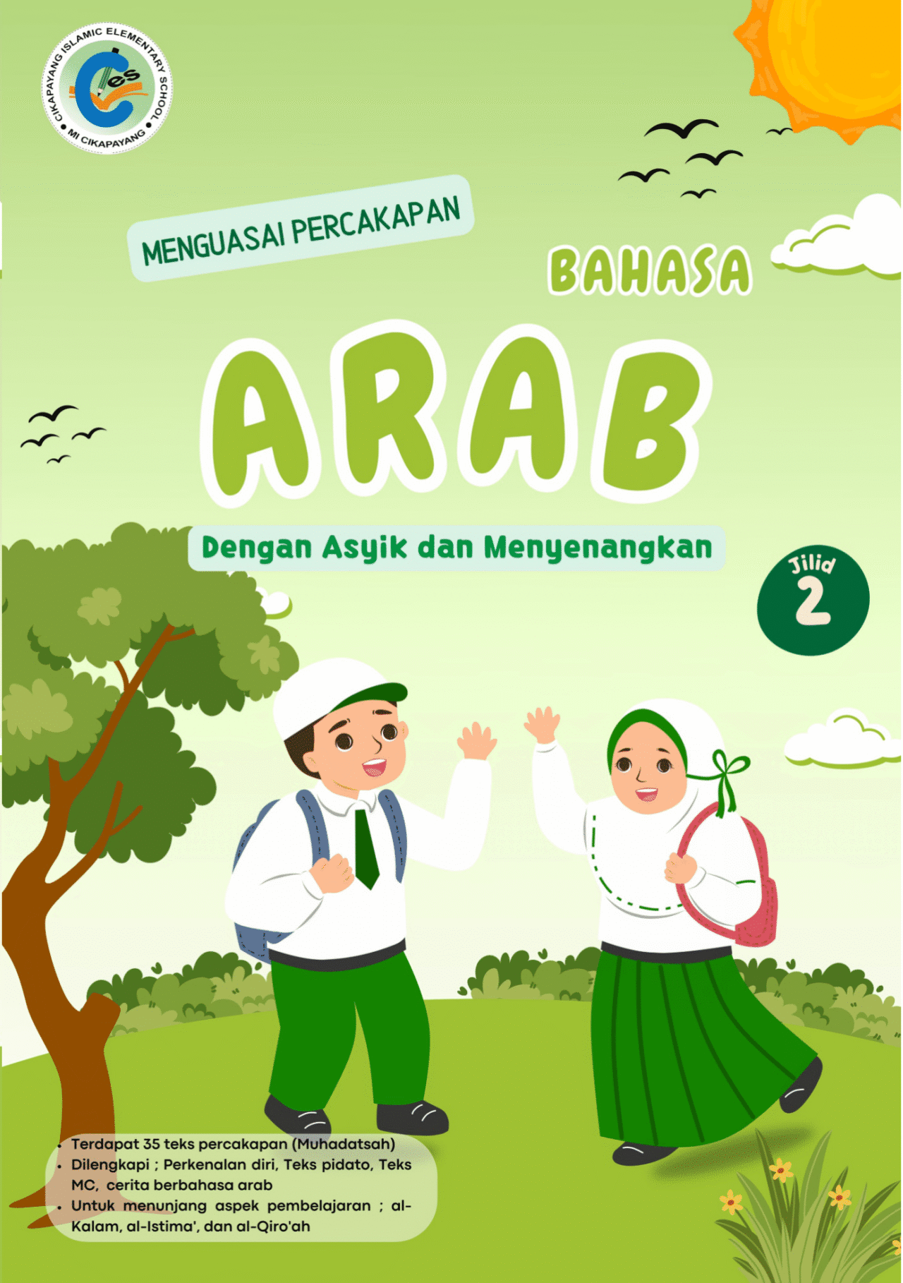 Buku Menguasai Percakapan Bahasa Arab Dengan Asyik dan Menyenangkan Jilid 2 hadir sebagai lanjutan dari Jilid 1, khusus untuk memperkuat keterampilan percakapan siswa. Dengan fokus pada aspek al-Qiroah (membaca), al-Kalam (berbicara), dan al-Istima’ (mendengar), buku ini dirancang agar proses belajar bahasa Arab terasa lebih mudah, interaktif, dan menyenangkan.